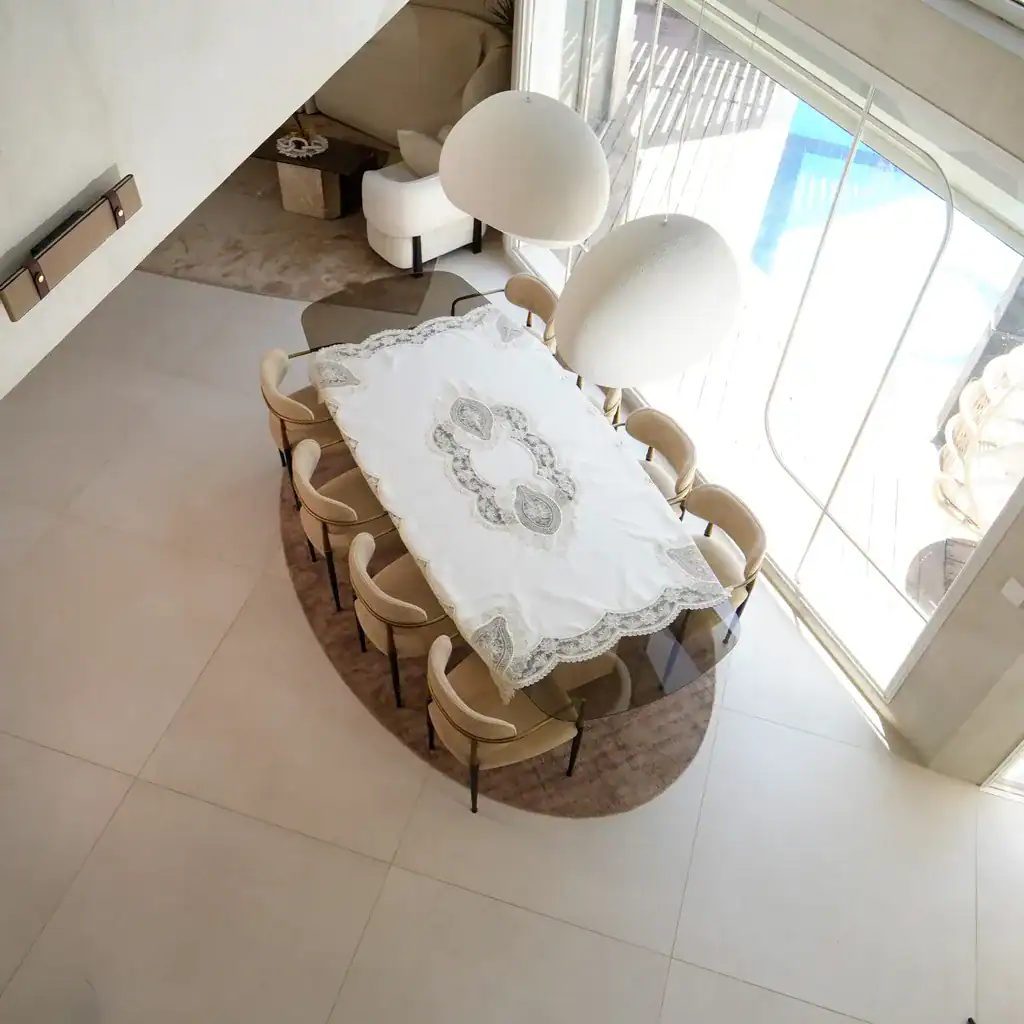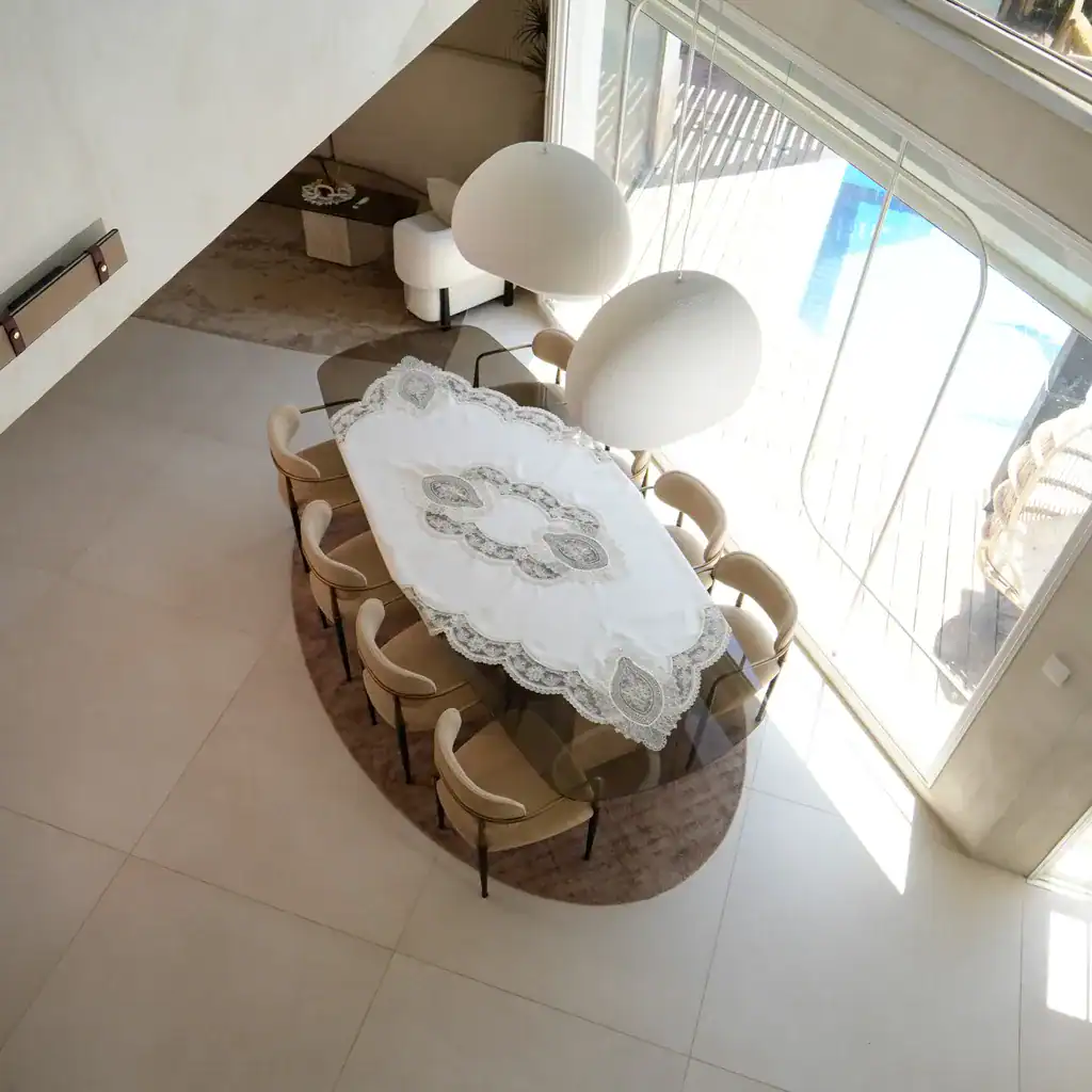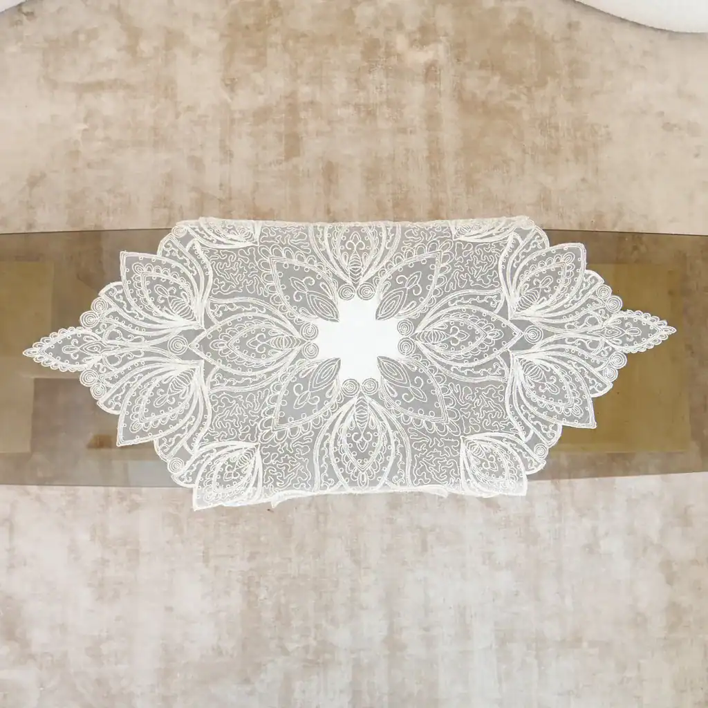 קולקציית אלין של מפות תחרה בעיצוב יקרתי ועשיר המציעה כרית נוי או מגוון מידות של מפות | רנר | פלייסמנט לשולחן הסלון כמוצר משלים