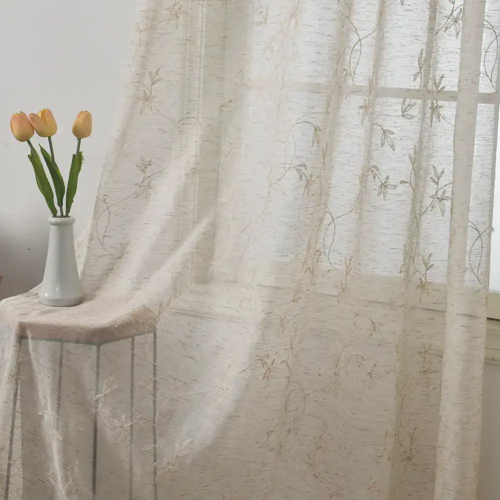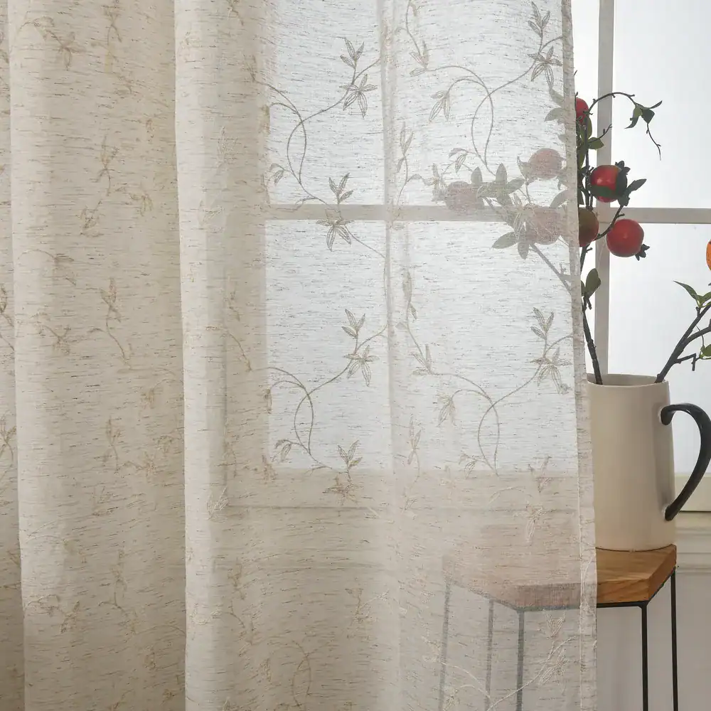 🌱 בד דמוי פשתן עם רקמה .